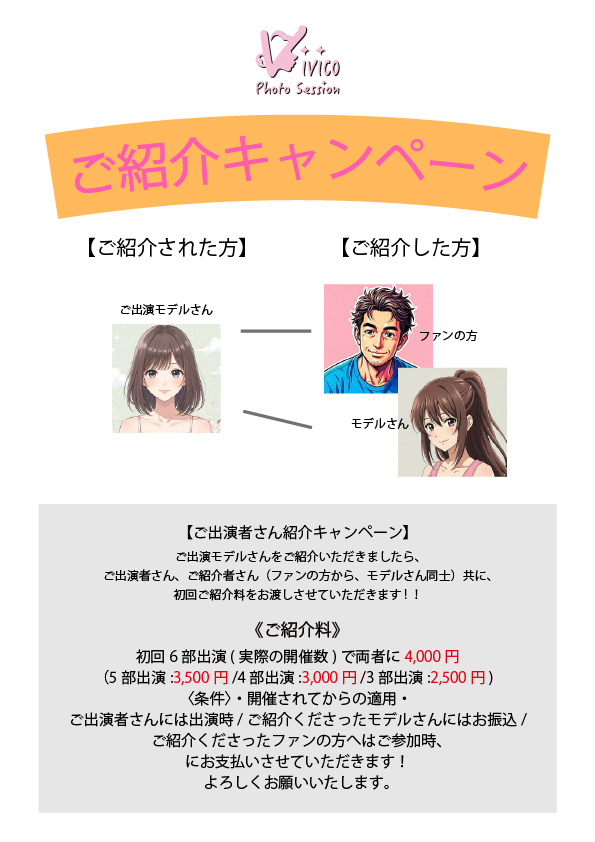 Vivico Photo Session にご出演してくださるモデルさんをご紹介いただきましたら、